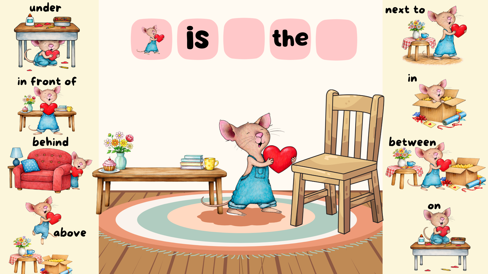 Practise prepositions of place with this fun activity based on the story Happy Valentine’s Day, Mouse!. 💖