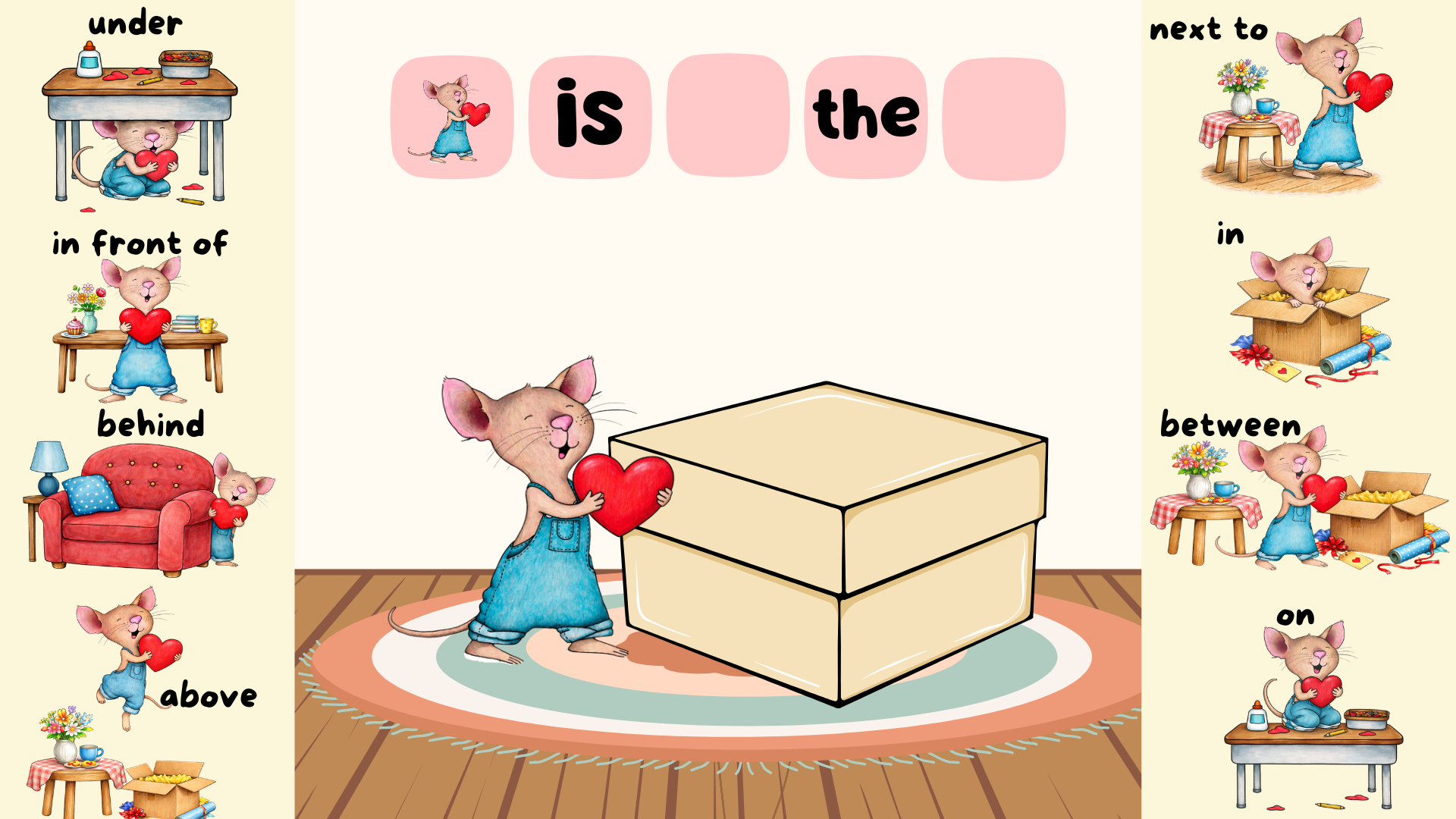 Practise prepositions of place with this fun activity based on the story Happy Valentine’s Day, Mouse!. 💖