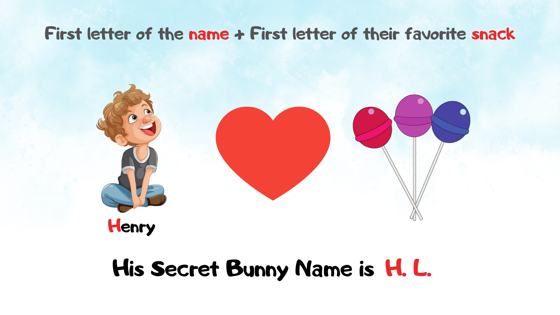 • Step 3: Combine them to reveal your secret identity! (e.g., "Hopper Cotton-Tail" or "Sparkle Jellybean")