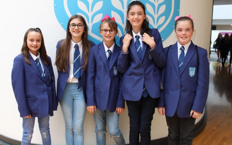 uniform, which consisted of a button-up blouse, pleated skirt, knee high socks,